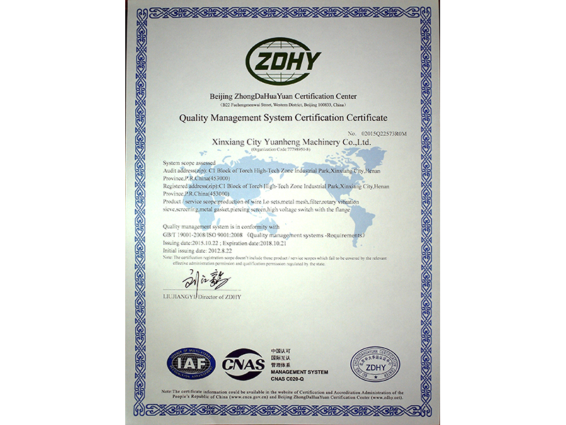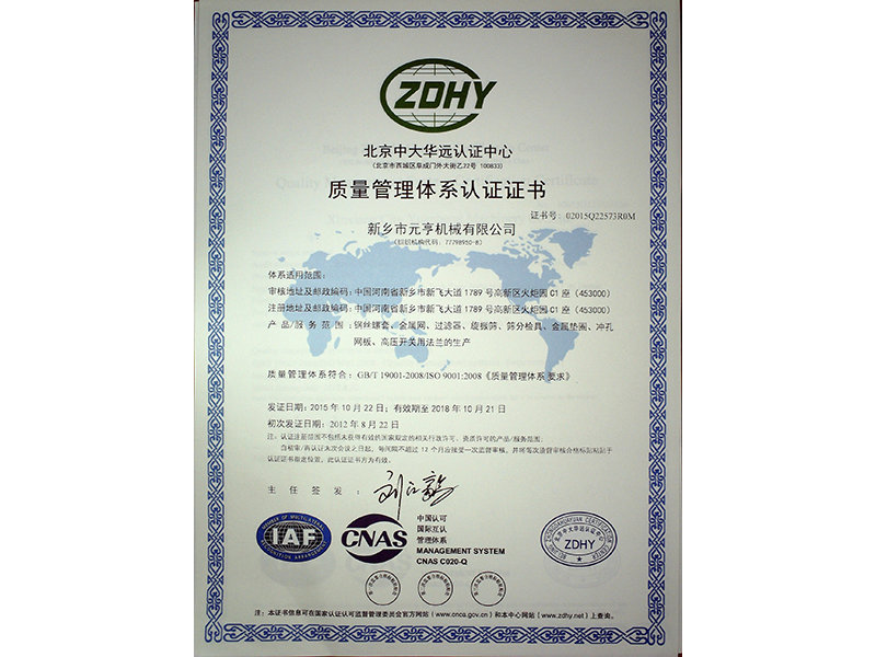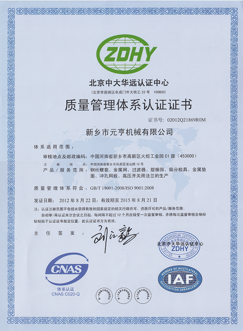質(zhì)量管理體系認(rèn)證證書(shū)(中文)