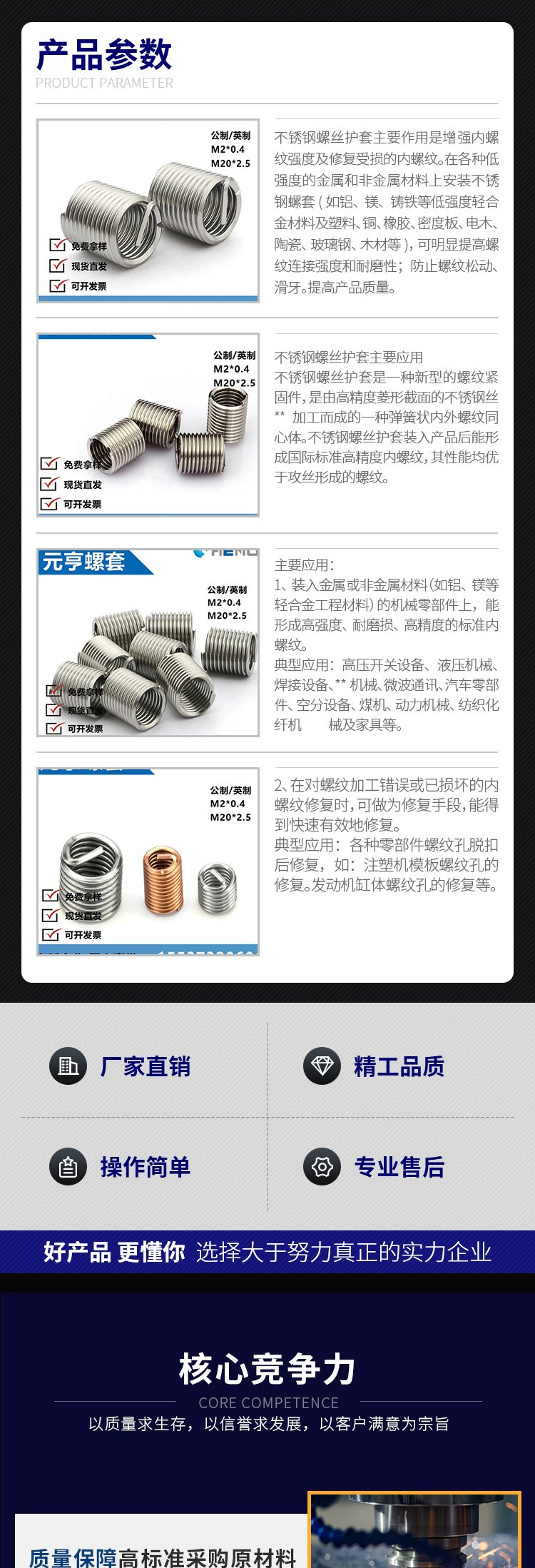 - 鋼絲螺套 ST2*0.4*4 絲套 鋼絲牙套 護(hù)套 元亨機(jī)械