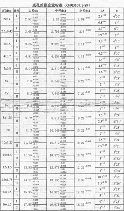 螺紋規(guī)格 | 鉆頭直徑( mm) | 螺紋規(guī)格 | 鉆頭直徑( mm) |