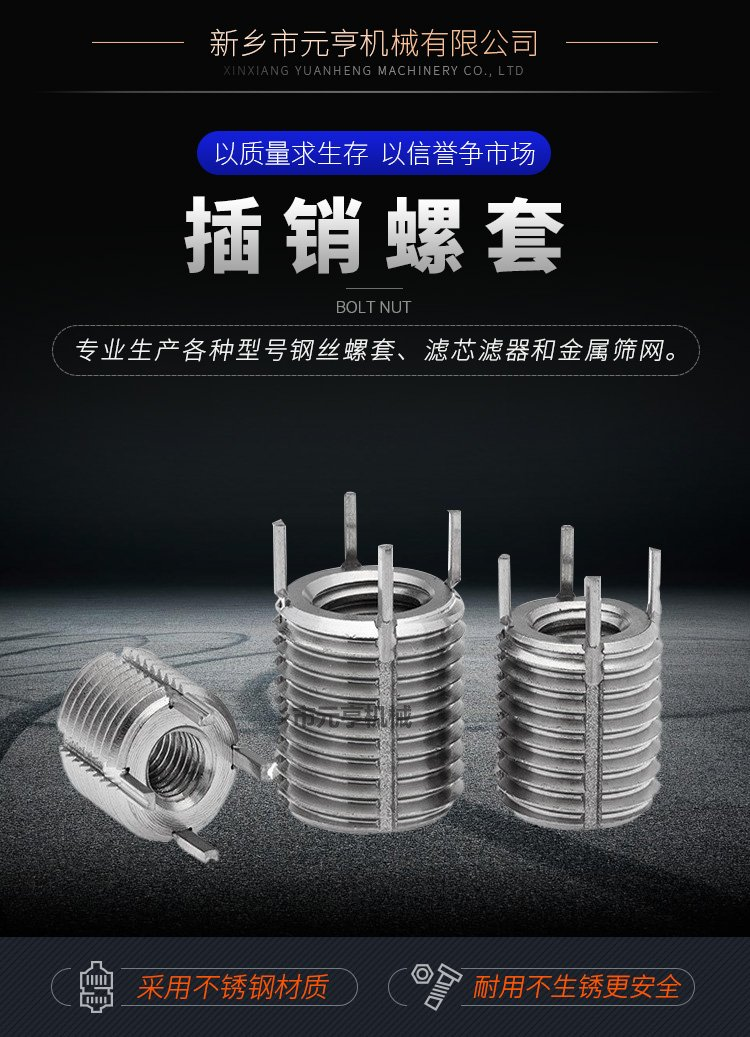鋼絲螺套在安裝后,一般通孔都要求將尾柄去除掉,具體方法是用沖斷器對準安裝柄,用200g的榔頭猛打一下,即可去除,對于18X2.5以上的粗牙絲套和14X1.25以上的細牙絲套,用尖嘴鉗上下彎曲安裝柄就能折斷。